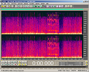 In spectral view, the workings of the psycho-acoustic model used in mp3 encoding are quite visible - removing most of the lower sound level frequencies of a signal if a louder set of different frequency(s) is present.