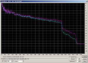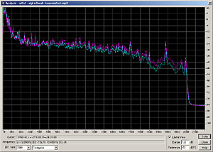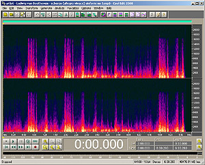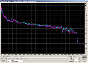 For each song there are four plots. Left is the original .wav for reference. First row is a frequency range analysis over the wohle piece, second row is a spectral (often referred to as voiceprint) view of the file. While the frequency range analysis shows the overall frequency response of the encoder and shows errors in stereo separation, the spectral view shows accuracy. Low sound levels are of dark colours, higher levels are brightly coloured (red to yellow to white).