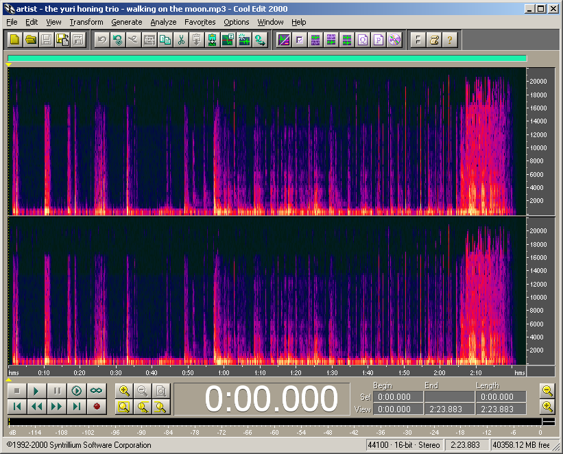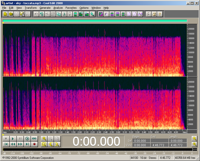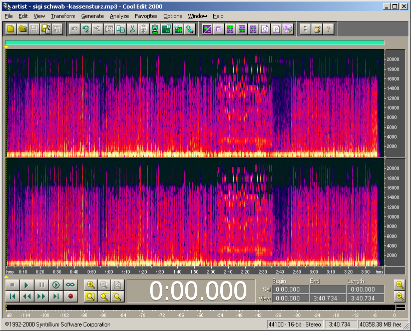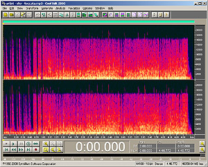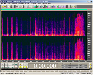 In spectral view, the workings of the psycho-acoustic model used in mp3 encoding are quite visible - removing most of the lower sound level frequencies of a signal if a louder set of different frequency(s) is present.