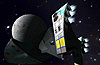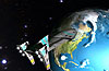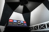 The idea of a space-type hatch room came up when the pneumatics used in the HyPI-6 door mechanism gave an audible hiss when closing the outer door. The interior therefore is modeled as to match the measures of the CAVE's projection chamber. Once people step inside, the sequence starts with opening the hatch. Further animation includes moving people slowly out of the spacecraft in a jerky, zero-gravity-type movement. Floating around in free drift, people can explore the scenery .)